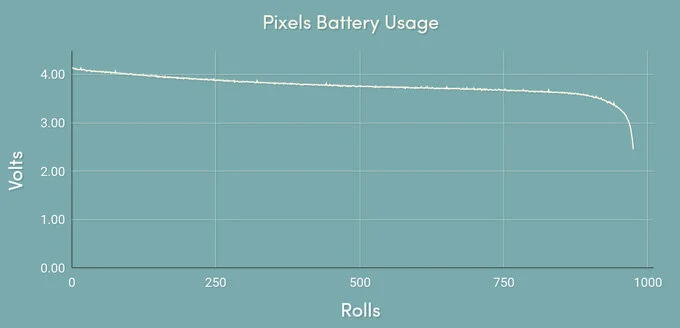 Once you've made your 1000 rolls, Pixels will recharge conveniently in the accompanying case. Every single Pixel will come with its own usb charging case. Place the die in its case. Make sure the highest face is up (20 in the case of the D20) and it will recharge in an hour or so.